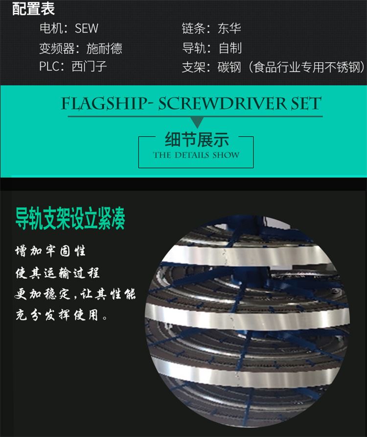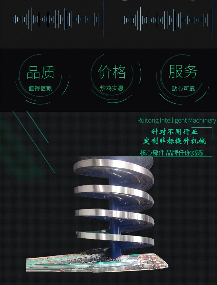 垂直提升機詳細參數(shù)表產(chǎn)品名稱 螺旋式垂直提升機關(guān)鍵詞 螺旋式垂直提升機、垂直提升機、螺旋式式貨物升降提升機電壓 110/220/380V功率 1.5/2.2/3.7/7.5/11/15/22KW材質(zhì) 不銹鋼/碳鋼提升高度2-20m材質(zhì)特性 耐腐蝕、耐磨臺面寬度 200-12000mm核心組件 電機減速馬達電機品牌SEW/Mitsubishi Electric/TRANSTECNO/Siemens/WANSHS